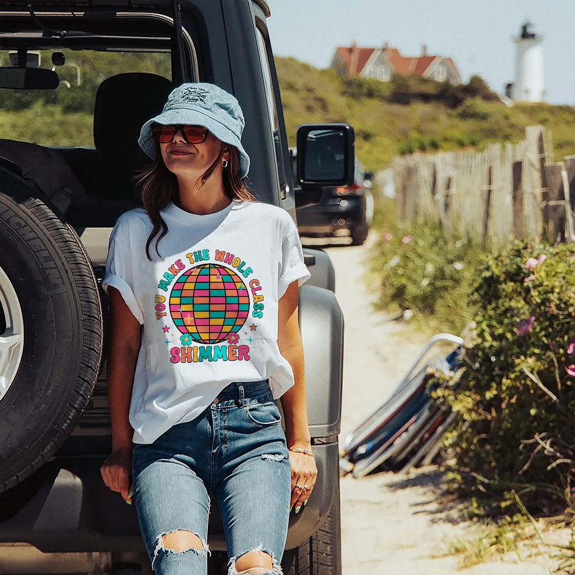 You Make The Whole Class Shimmer T-Shirt - Funny Shirt For Teacher - White- Up To 5XL
